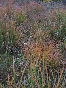 Notes: a warm-season perennial grass; grows a compact clump of bluish-green leaves turning orange to red in fall; silky seeds throughout upper stems; works well as an ornamental.