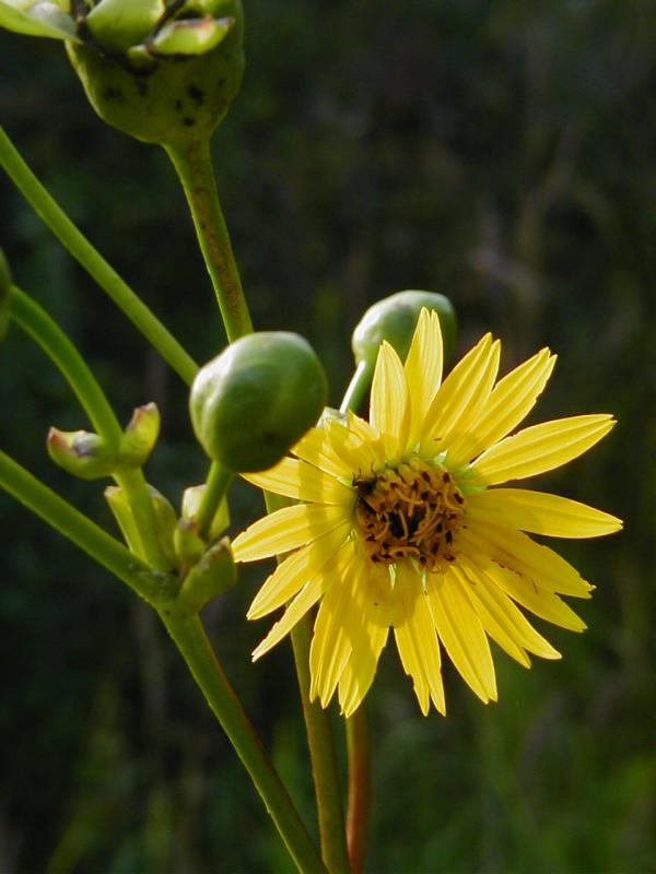 Notes: a clusters of large, upright lower leaves sends up a leafless stalk in late summer that branches into numerous yellow flowers; a long-lived perennial; deep tap root.